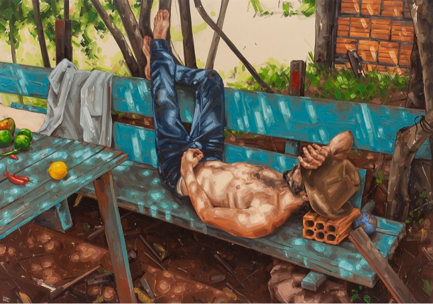 Ao longo de 35 obras, entre pinturas e instalações, o artista convida o público a refletir sobre a sua relação com o tempo no mundo contemporâneo, marcado pela urgência e pelo consumo rápido de imagens. Em trabalhos como ‘Aqui, agora’ e ‘Véia Dica’, Baroli transforma lembranças e modos de vida em gesto de resistência poética frente à velocidade contemporânea.