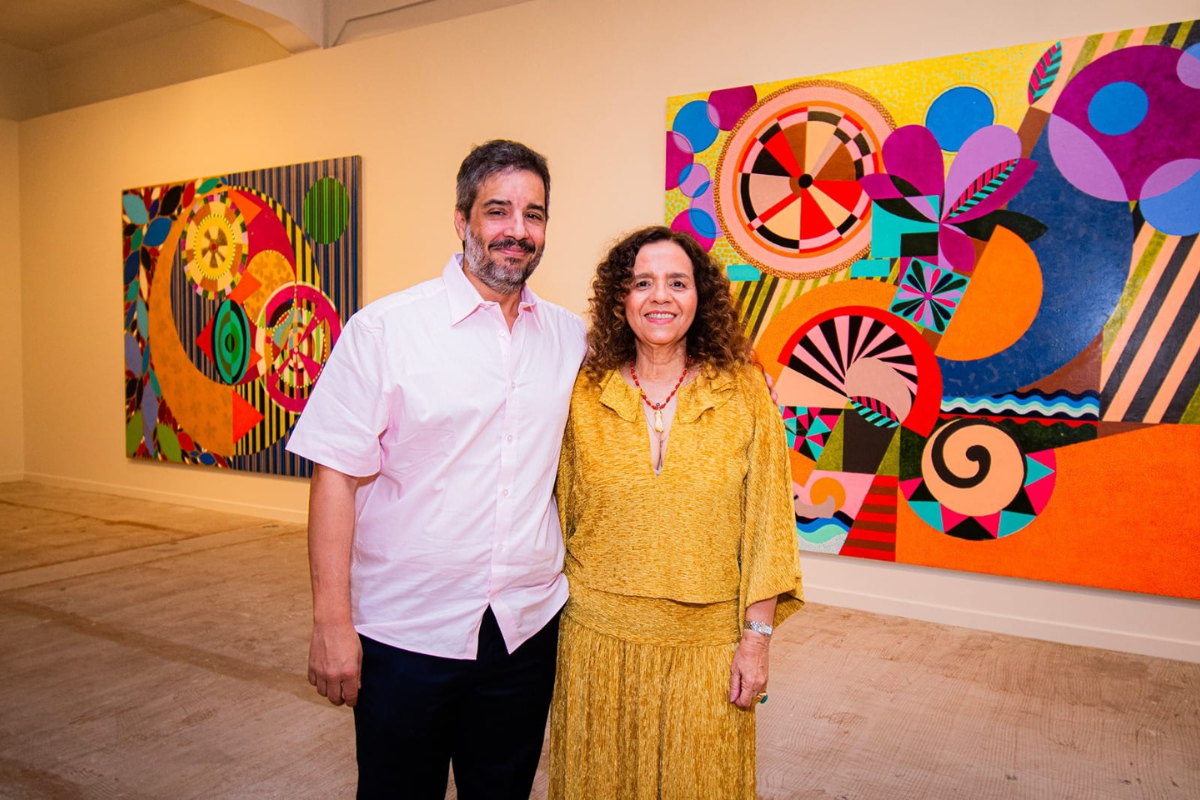Entre as peças expostas, o destaque é o painel “O Giro das Águas I” (2025), desenvolvido especialmente para a ocasião e instalado em posição central no salão da exposição. A mostra tem curadoria de Tiago Mesquita e propõe um diálogo entre a linguagem ornamental característica da artista e elementos que evocam paisagens e atmosferas associadas ao universo cultural brasileiro.