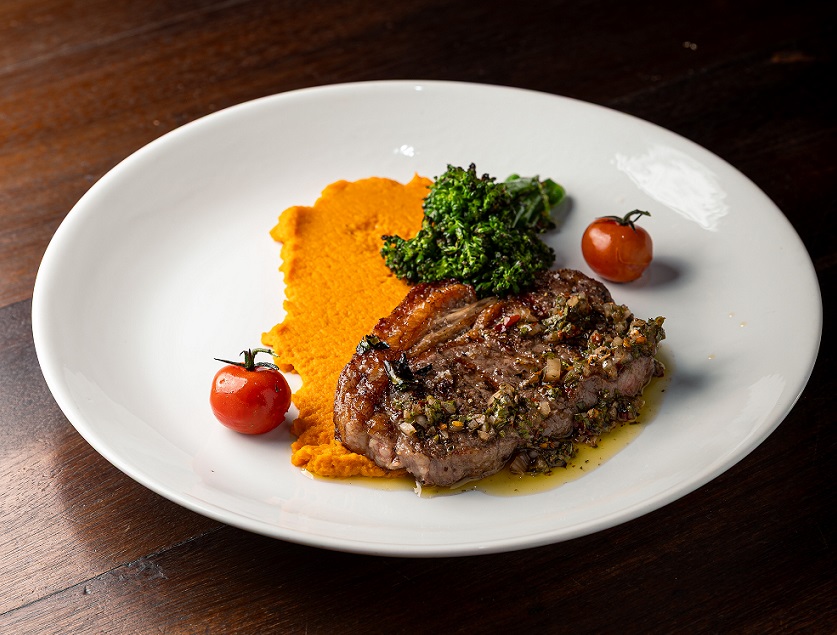 Nos principais, aparecem combinações que destacam a potência e a delicadeza do fogo, como o Peixe na Brasa com Purê de Mandioquinha, Legumes Salteados e Emulsão de Laranja, e o Bife Ancho na Brasa ao Molho Chimichurri com Purê Defumado de Cenoura e Brócolis. As sobremesas variam mensalmente, sempre seguindo a linha de simplicidade elegante.