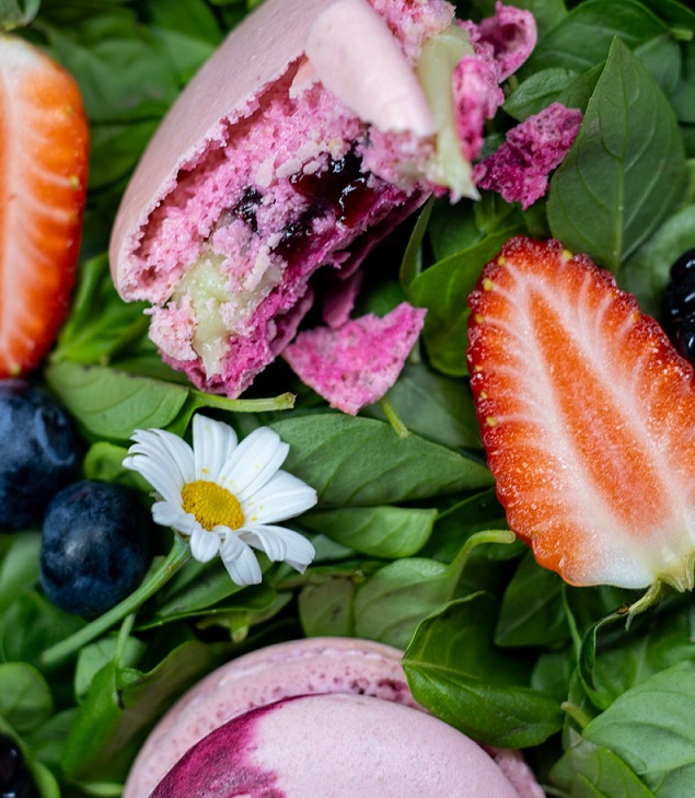 O cardápio também apresenta o Macaron de Manjericão e Frutas Vermelhas, versão especial do carro-chefe de casa, que mistura o frescor da erva aromática com o dulçor ácido das frutas.