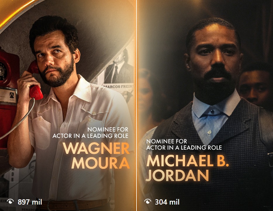 O reels dedicado ao ator baiano, indicado por O Agente Secreto, chegou a quase 900 mil visualizações no período. A publicação também reuniu mais de 90 mil curtidas, cerca de 17 mil comentários e mais de 6 mil compartilhamentos — números que superam com ampla margem as interações registradas nas postagens sobre os demais indicados.