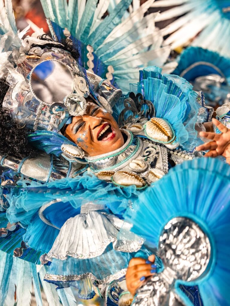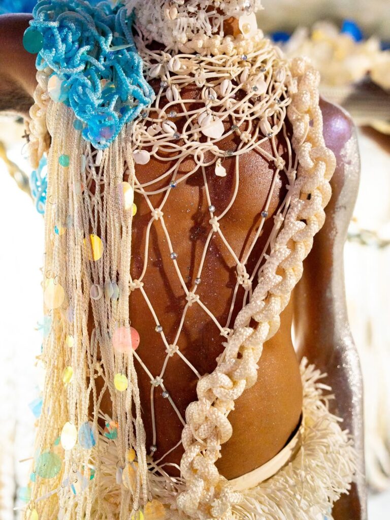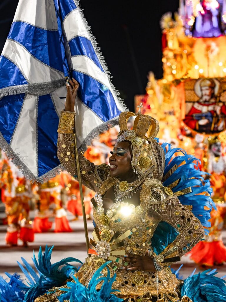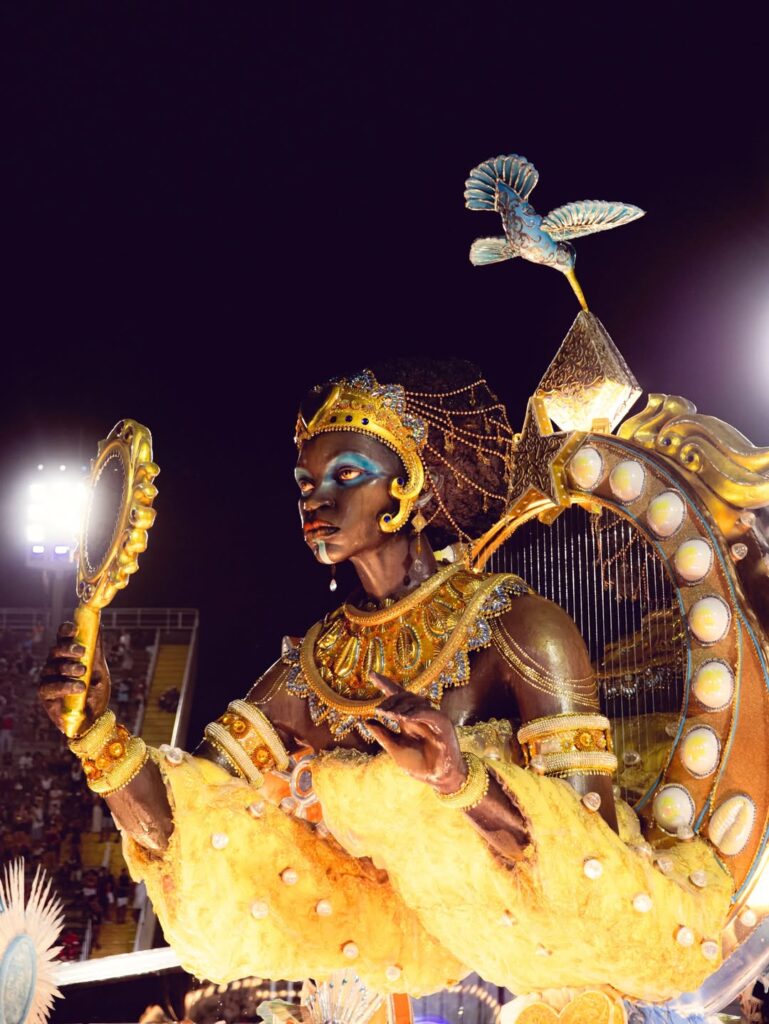 Mais do que reconstituir uma celebração religiosa, a apresentação evocou a ocupação do espaço público pelo povo negro em um período em que a liberdade recém-declarada ainda não significava igualdade plena. A narrativa visual alternou mar e sagrado. Oxum e Iemanjá foram representadas em alegorias que combinavam delicadeza e imponência.