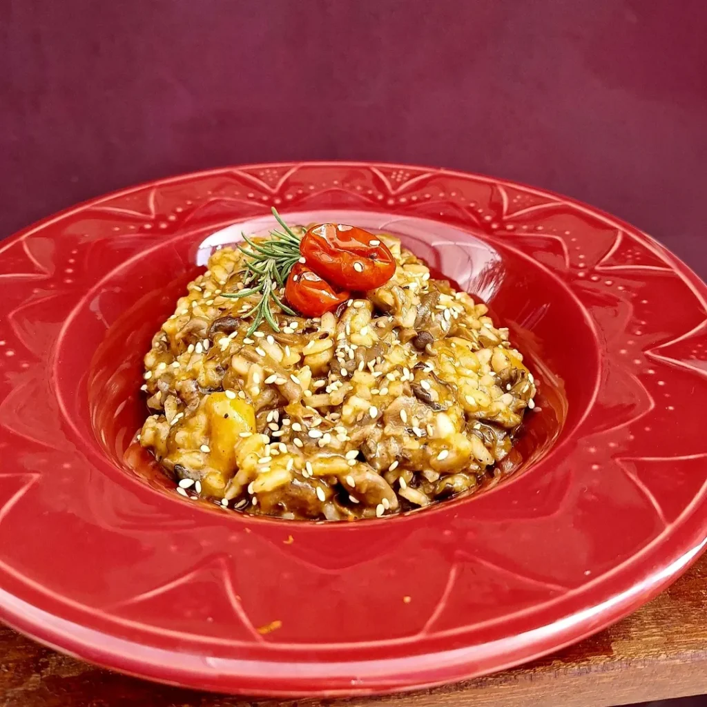 Entre os pratos principais, o cardápio mantém essa linha de equilíbrio entre criatividade e conforto. O “Chapeleiro Maluco” é um dos pratos mais representativos dessa proposta. O risoto de cogumelos, que combina shiitake e shimeji, ganha profundidade com a adição de castanha de caju, páprica doce e missô. O resultado é um prato de sabor marcante, mas bem amarrado, em que os ingredientes dialogam sem que nenhum se sobreponha.