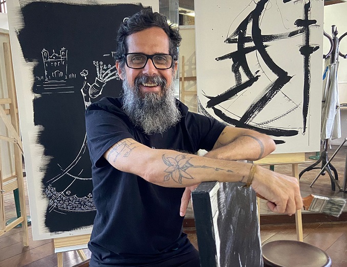Em Entre Flores, o artista, reconhecido pela estética minimalista e por traços que dialogam com a identidade baiana, apresenta um conjunto de telas que percorre diferentes fases de sua trajetória.