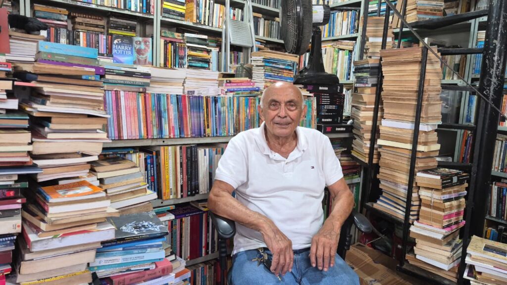 À espera de alguém — seja para uma negociação ou para uma boa conversa —, João Brandão, de 84 anos, está sempre presente no sebo que leva o seu nome. Esse, porém, tem pouco mais de um ano. Desde 1969, quando chegou a Salvador vindo do interior de Pernambuco, ele, na companhia do irmão, cuidou do Sebo Brandão Bahia, considerado por moradores o mais antigo da Rua Ruy Barbosa, fechado em 2024. O irmão de João, seu Eurico, voltou para o estado de origem, mas ele decidiu ficar.