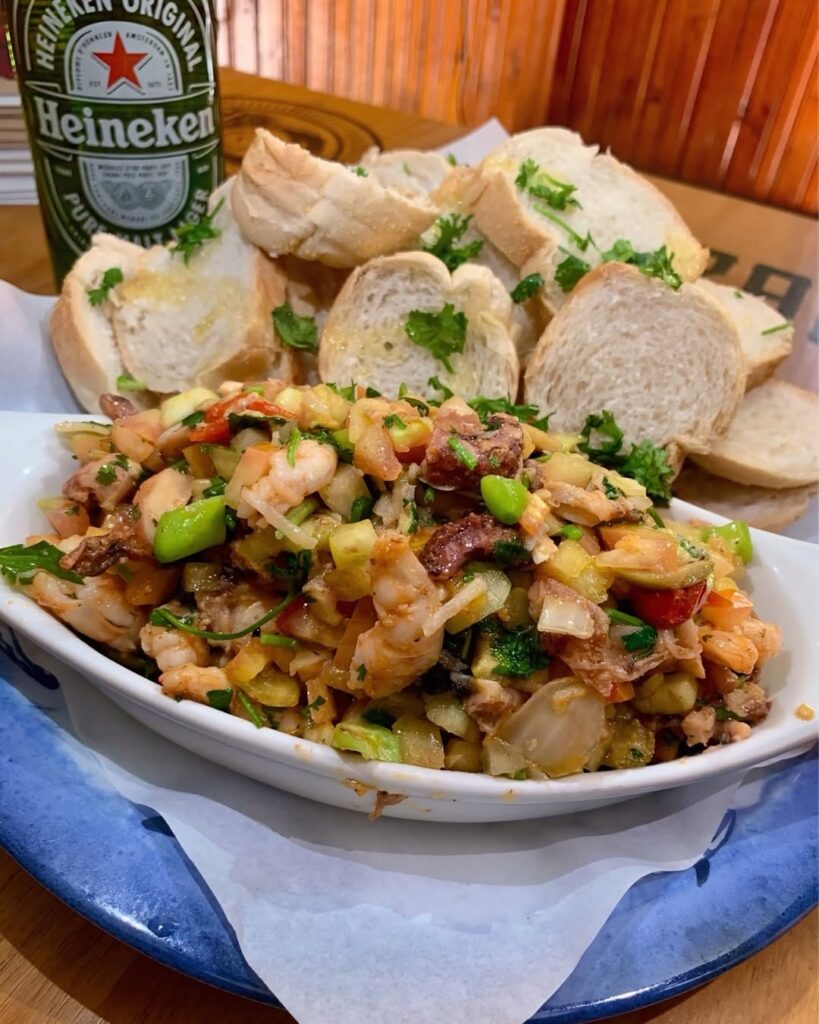 A primeira impressão pode até remeter a um lugar despretensioso demais, mas basta algum tempo à mesa para perceber que há um cuidado evidente naquilo que é servido. Apesar do nome sugerir protagonismo das bebidas, é na cozinha que o bar encontra sua identidade mais forte. O cardápio é amplo e transita com segurança entre diferentes referências, indo dos frutos do mar — muito porque, antes de ser bar, já foi barraca de praia — a pratos mais ligados à culinária sertaneja, sem perder consistência.