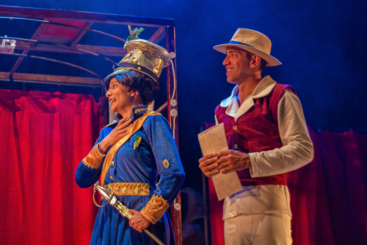 No palco, a encenação recupera passagens menos difundidas da biografia da personagem, desde sua origem no sertão até o reconhecimento posterior de sua atuação militar. Com linguagem de caráter lírico, a obra enfatiza o gesto simbólico de Quitéria ao adotar vestimentas masculinas para ingressar nas fileiras de combate, tensionando convenções de gênero e destacando a dimensão política de sua escolha.