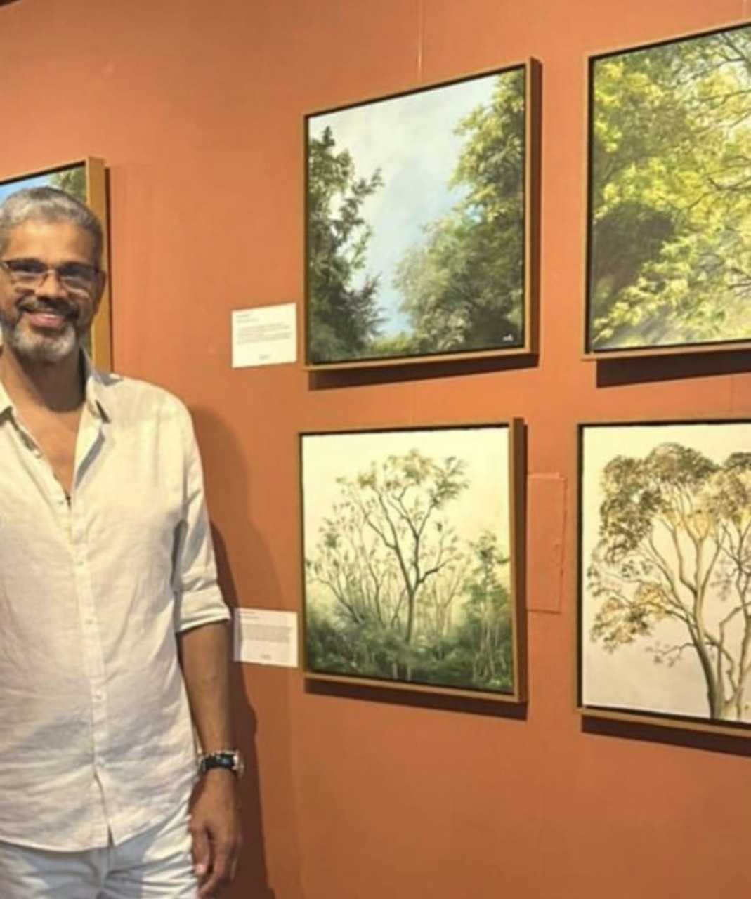 As 14 telas do artista exibem um processo de reconexão com a natureza, sobretudo através da pintura a óleo. “Eu me identifico com o processo; suas diversas camadas permitem que eu viaje, no momento da criação da imagem e do resultado, daí surge um riacho, um rio, uma árvore, uma sombra”, explica Moisés, que estudou desenho, pintura e fotografia na Escola de Belas Artes (UFBA).