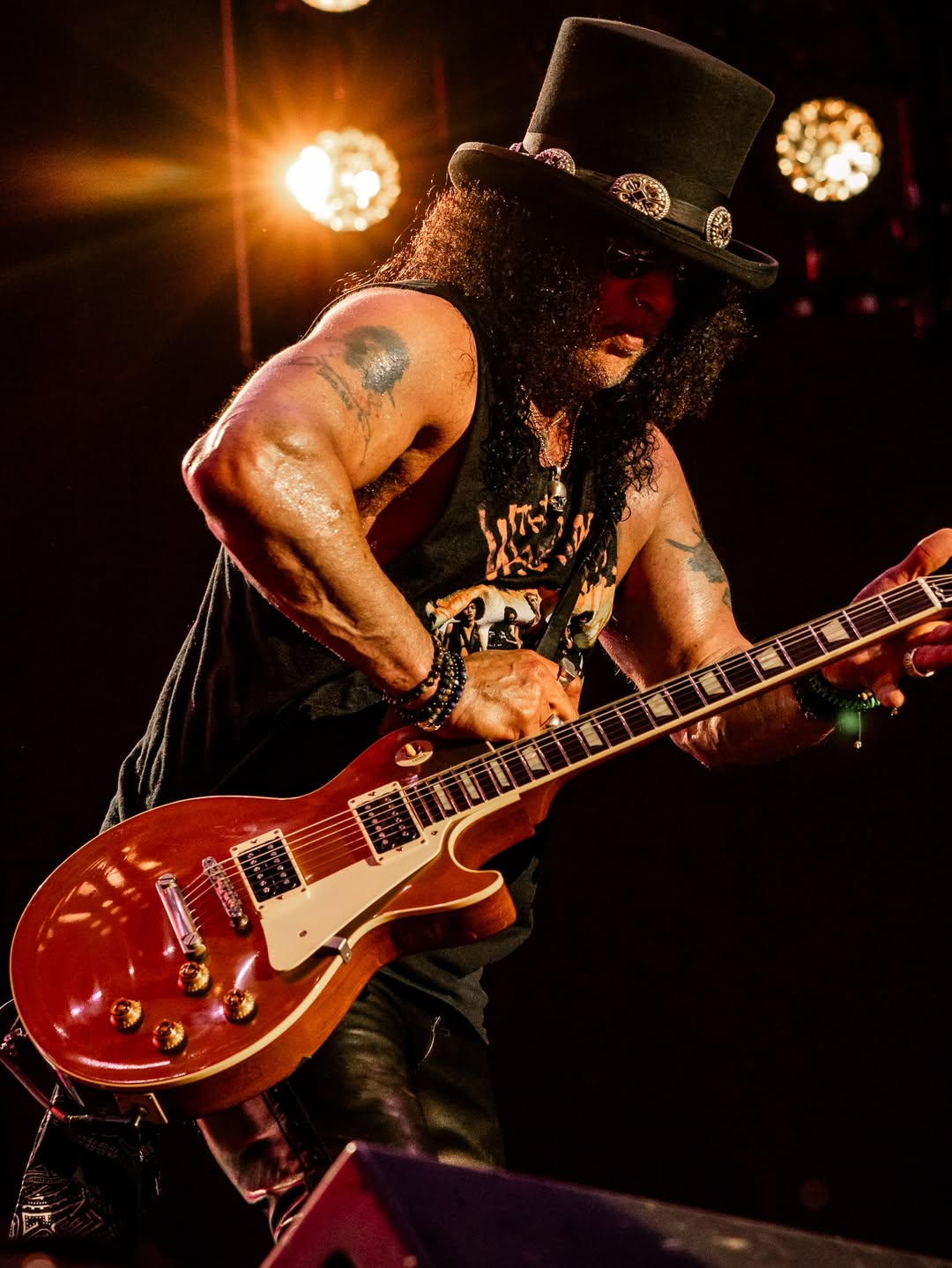 Com Axl Rose à frente, a banda conduziu uma apresentação ancorada em seu repertório mais reconhecido, alternando momentos de maior intensidade com passagens mais cadenciadas. A presença de Slash se destacou nos solos, que pontuaram o show com precisão e reforçaram a identidade sonora do grupo, enquanto o público — formado por fãs históricos e novos ouvintes — acompanhava cada faixa com familiaridade.