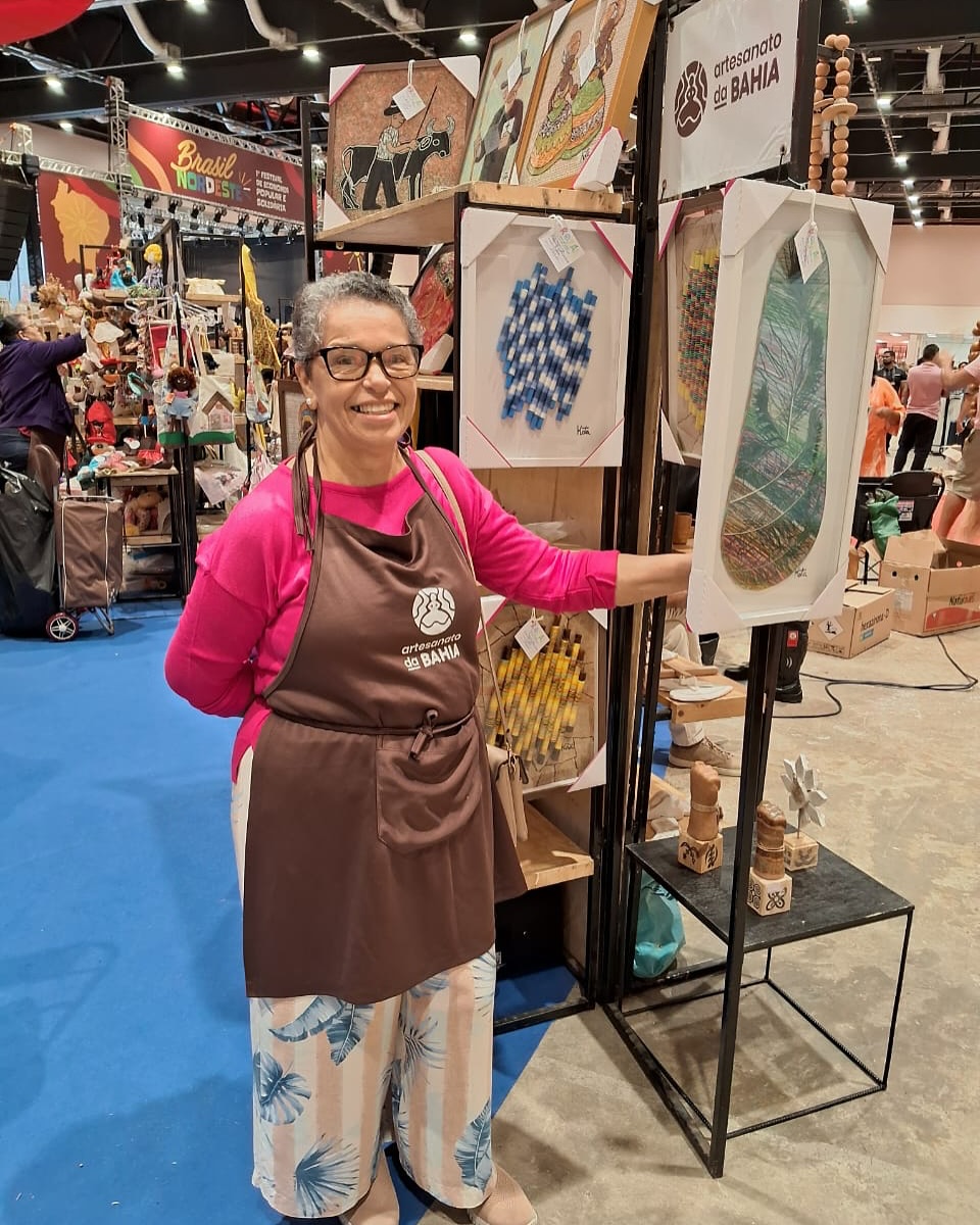 A presença na Sesol já entrega uma prática empreendedora de Angela que é colaborativa. Junto a outros artistas do estado, ela opta por expor suas obras em lojas coletivas e participar de eventos com colegas como o Festival Nacional de Artesanato da Bahia (Fenaba), que aconteceu em outubro na Arena Fonte Nova. A parceria com o Sesol, em específico, dá continuidade a um processo que começou quando a artista não tinha nem plena segurança da técnica exclusiva que ainda estava desenvolvendo.
