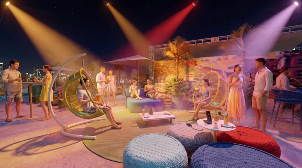De acordo com Nathalie, o conceito também dialoga com o tema do camarote, que é a valorização do Samba de Roda do Recôncavo. “A gente buscou uma linguagem contemporânea, mas com uma base muito ligada à cultura e à materialidade brasileira, sem cair no óbvio folclórico. A proposta é essa mistura de identidade cultural com design atual, criando uma experiência sensorial mais madura e luxuosa dentro do Carnaval”, afirma a arquiteta.