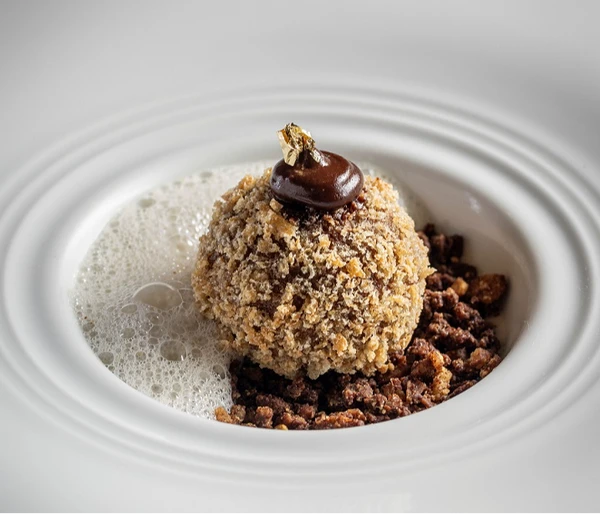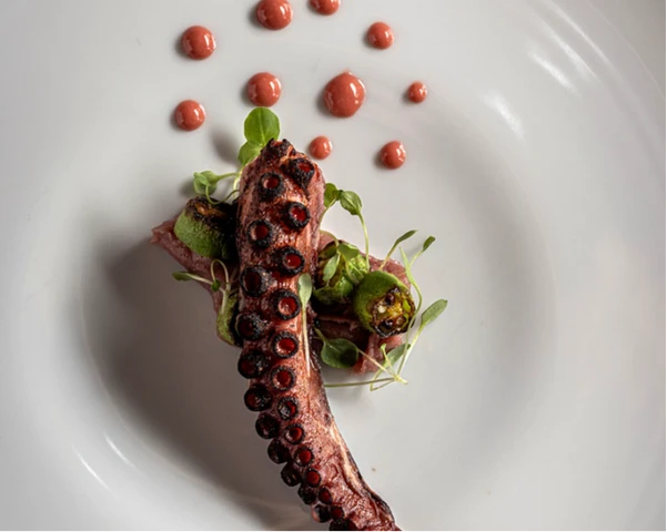De Cachoeira nasceram os pratos inspirados nos povos dos terreiros, representados no feijão-fradinho do Agnolloti que acompanha um Polvo Crocante, jus suíno (molho feito com o caldo do cozimento da carne de porco) e cogumelos. “De lá também vieram outros importantes ingredientes como o camarão seco, o leite de coco, o milho da pipoca e a banana da terra”, diz.
