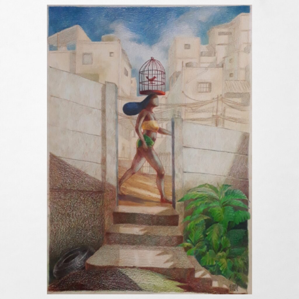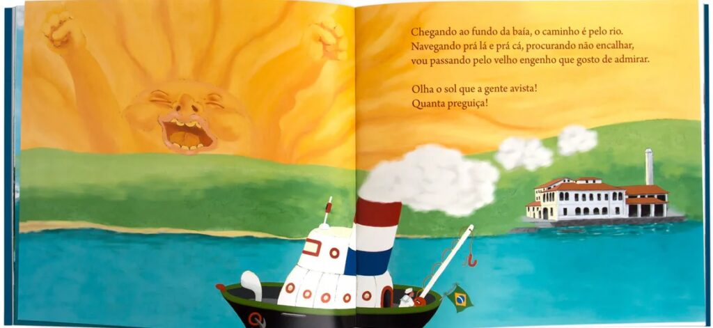 “Quando esses dois elementos, imagem e palavra, trabalham juntos, para acrescentar um ao outro, e não repetir, é gerado um gatilho, uma tensão, que o jovem leitor vai perceber. Em geral, a criança olha as imagens, e o pai e a mãe leem. Enquanto ouve, os olhos dela seguem outro caminho, que vai se juntando ou se afastando da história contada em texto. Isso cria distâncias e aproximações, que estimulam a criatividade e a imaginação. Não é um prato feito. Precisa ter os ingredientes para a criança ‘cozinhar'”, explica Esteban. Ele costuma trabalhar com livros infantis e quadrinhos. Roma Negra, de 2023, também pela Solisluna, é uma carta de amor a Salvador. A imagem que abre este texto é do 2 de Fevereiro.