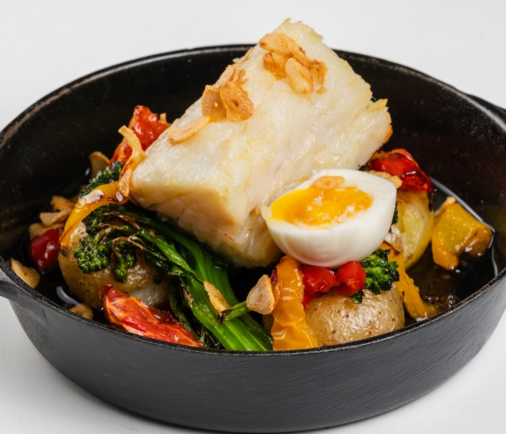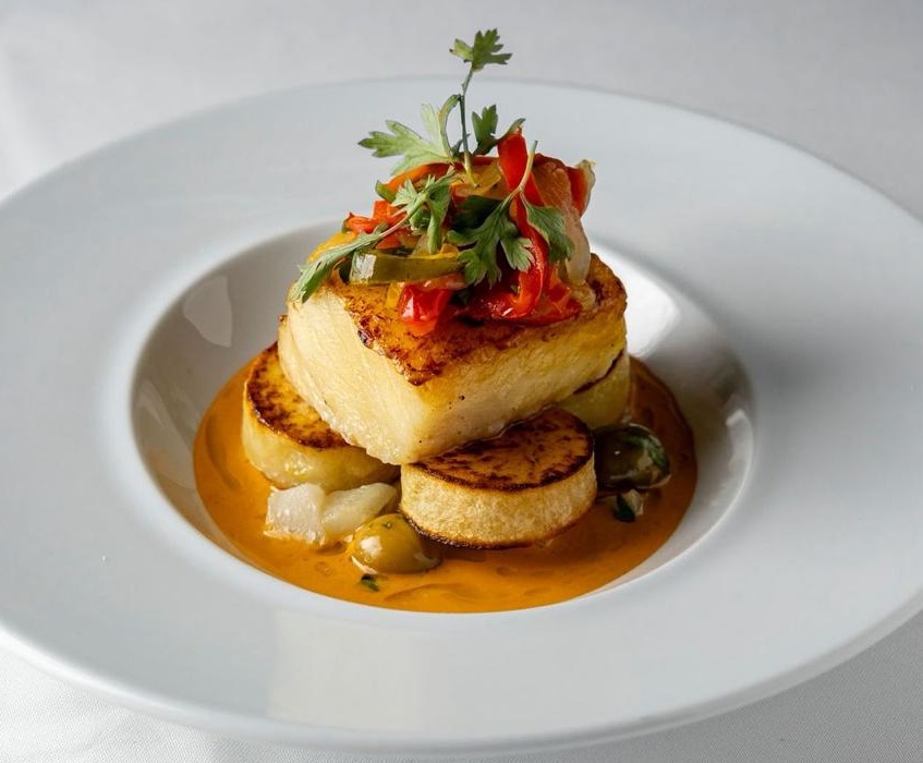 O prato traz lombo de bacalhau cozido lentamente, finalizado com um molho de inspiração mediterrânea à base de tomates italianos, azeitonas pretas, alcaparras, uvas-passas e ervas-frescas. Um equilíbrio delicado entre sabores intensos e notas levemente adocicadas. Sem reinvenção, sem concessões ao modismo. Aqui, a força está na permanência — e na execução consistente de um clássico que já provou seu valor.