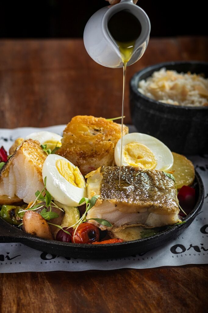 No restaurante mais casual do Grupo OriGem, o Orí, os premiados chefs Fabrício Lemos e Lisiane Arouca criaram duas sugestões de bacalhau: o Arroz de Bacalhau e o Bacalhau de Forno com vegetais grelhados, ovo cozido, azeitonas e coulis de pimentão assado.