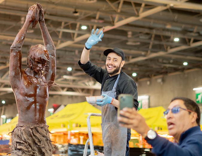 Transformando sabor em arte, o Espaço Brasil apresentou ainda uma escultura feita 100% de chocolate, esculpida pelas mãos dos artistas chocolatiers Tati Benazzi e Léo Vilela com 350 kg de chocolate. Com tema “Guardiões da Floresta”, a peça foi uma homenagem à biodiversidade da Amazônia e aos seus povos protetores e a COP30, que será realizada em Belém em 2025.