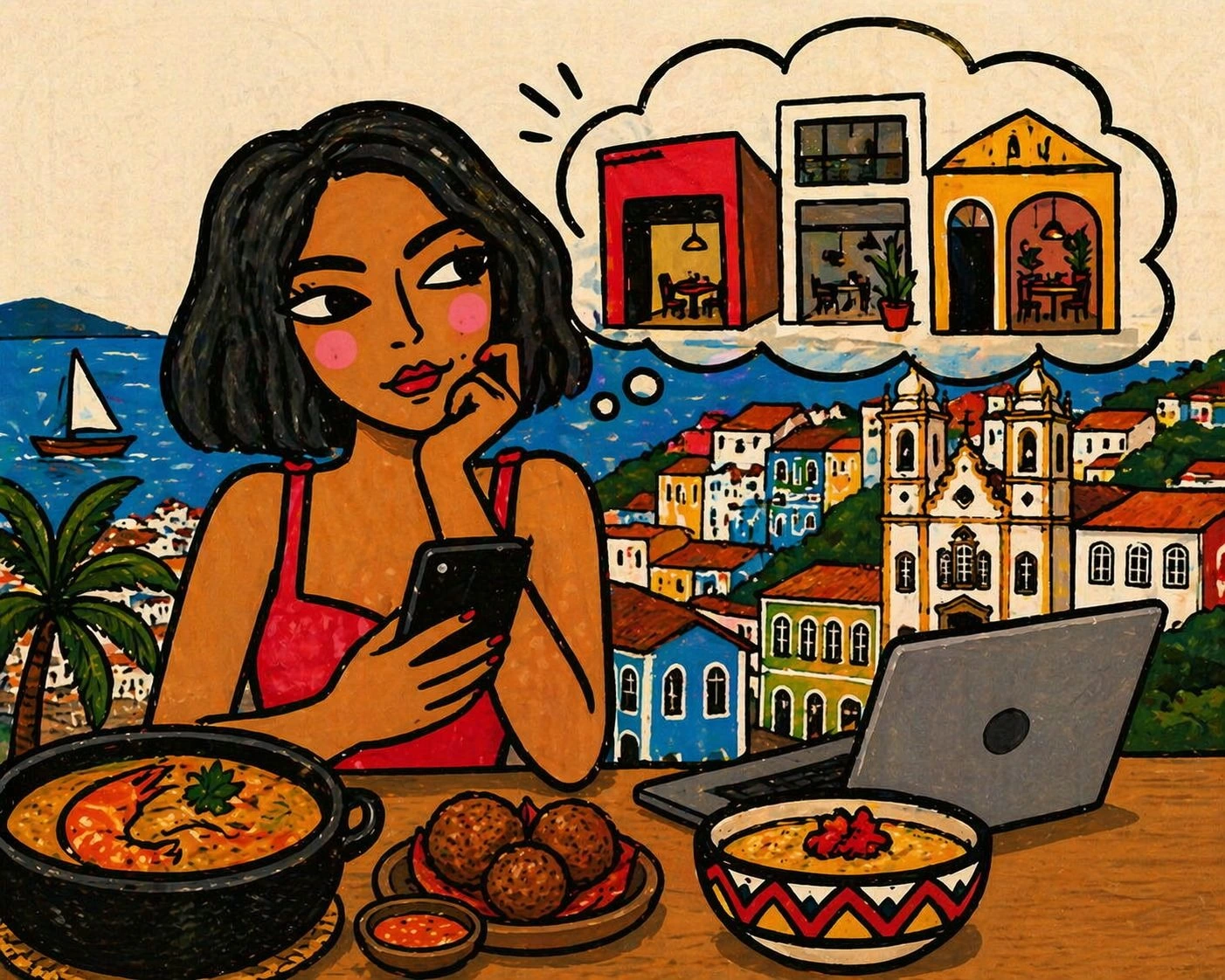 Quando um turista pergunta ao ChatGPT ou ao Gemini “quais são os melhores restaurantes em Salvador?”, alguns nomes aparecem com constância: Origem, Casa de Tereza, Amado, Manga, Orí, Dona Mariquita. Para quem conhece a cena gastronômica soteropolitana, a lista até faz sentido. Mas o critério que coloca esses restaurantes nas respostas da Inteligência Artificial não tem nada a ver com o sabor da moqueca ou o frescor do acarajé.