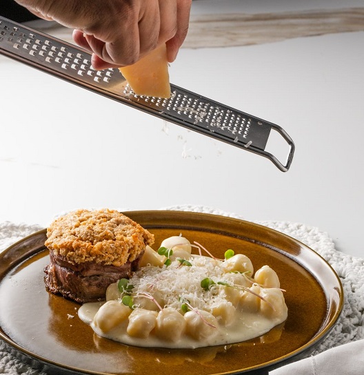Ao tempo em que integra o clube de praia, onde o visitante pode usufruir de sua estrutura com um pé na areia e outro na água azul das duas piscinas que dialogam com o mar, o restaurante, que conta com dois salões, um sobre o outro, funciona independente do clube. Quer dizer, você pode ir lá apenas para almoçar ou jantar. O espaço, que já teve a cozinha comandada por outros dois chefs, está prestes a ganhar novidades no cardápio, criadas pelo chef Raianderson Santos, que apesar de jovem, é um velho conhecido do universo local da gastronomia, com passagens por restaurantes bem conceituados como os do Grupo Vini Figueira, de onde veio direto para o novo posto.
