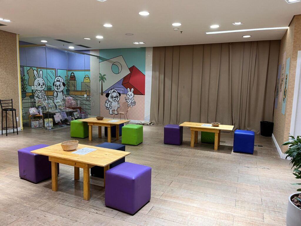 Localizado no piso L2, ao lado da praça de alimentação, o espaço oferece mesas, cadeiras, lápis coloridos e uma seleção de desenhos e livros prontos para serem preenchidos. A proposta é proporcionar uma pausa no dia a dia agitado do shopping, promovendo momentos de bem-estar, imaginação e conexão entre gerações.