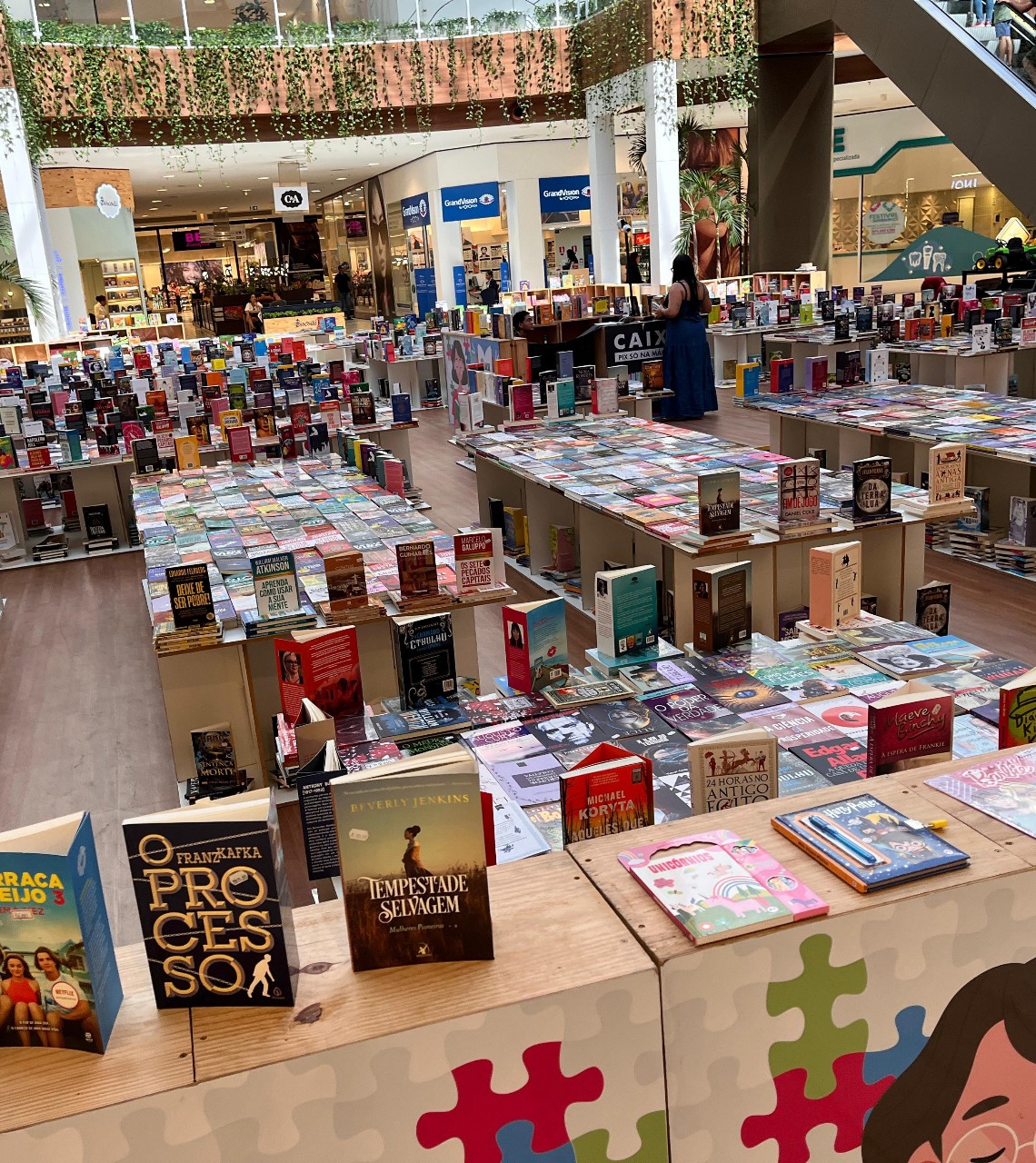 A feira está montada na Praça de Eventos II, no piso L1, e o valor dos livros começa a partir de R$ 10.