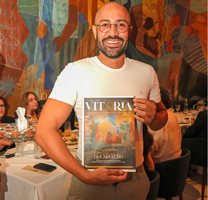 Vini Figueira foi a principal estrela do lançamento da terceira edição da revista Viver Vitória, que aconteceu na última sexta-feira (08), no restaurante Genaro por Vini, no Hotel da Bahia by Wish. Além de capa da publicação da editora Due Content – que está completando 15 anos sob o comando de Yêda Nunes, Leandro Maia e Luzia Novis – o chef não só cedeu o restaurante para a festa como foi o responsável pelo bufê.